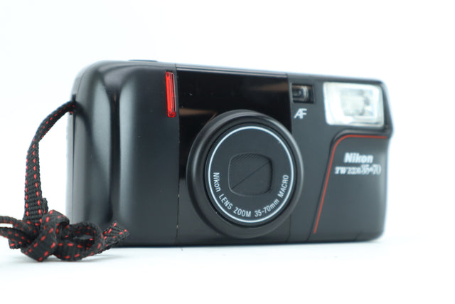 Product Description: The Nikon TW Zoom 35-70 is a classic 35mm point-and-shoot film camera designed for convenience and versatility. With a 35-70mm zoom lens, this camera offers a range from wide-angle to short telephoto, making it suitable for various types of photography, including landscapes, street photography, and portraits. The zoom feature allows for flexible composition, giving users the ability to capture wide scenes or zoom in for more detailed shots without needing multiple lenses.