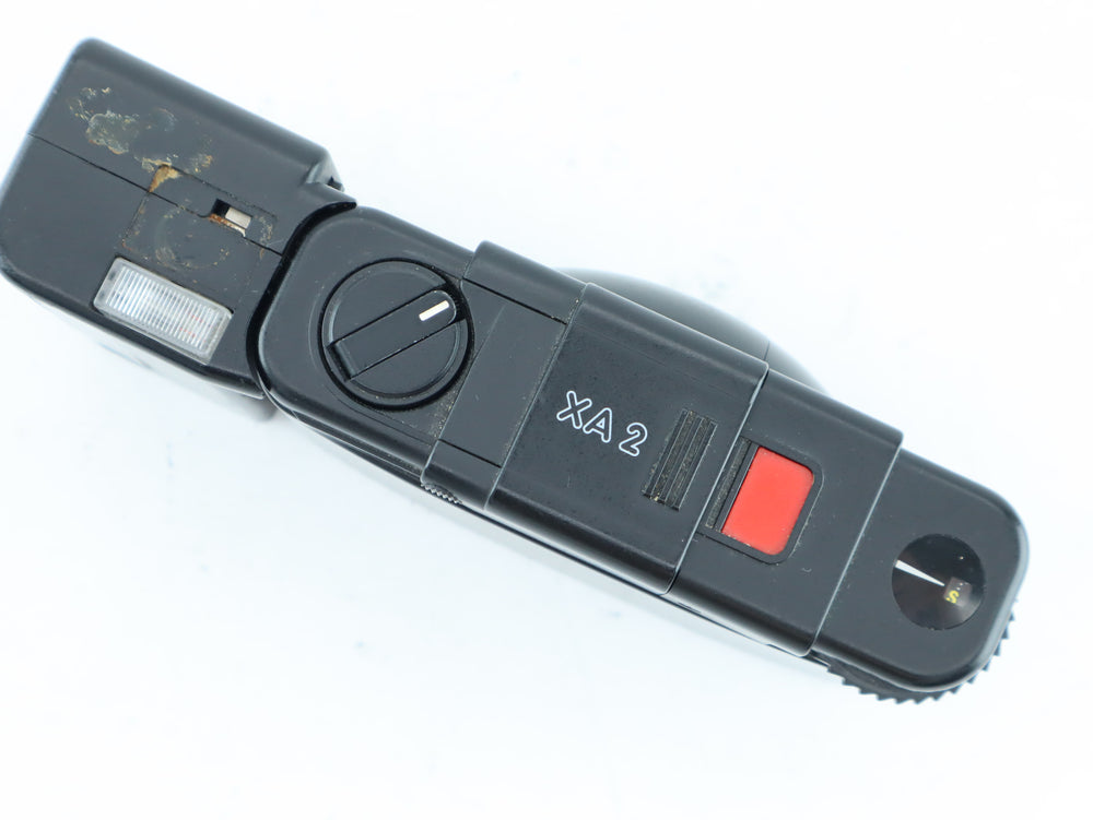 The Olympus XA2 is a compact 35mm film camera, known for its pocket-friendly design and high-quality optics. Introduced in the 1980s as part of the XA series, the XA2 features zone focusing, automatic exposure, and a quiet leaf shutter, making it an excellent choice for street photography, travel, and everyday film shooting. Paired with the Olympus A11 electronic flash, this setup ensures great low-light performance and classic analog charm.