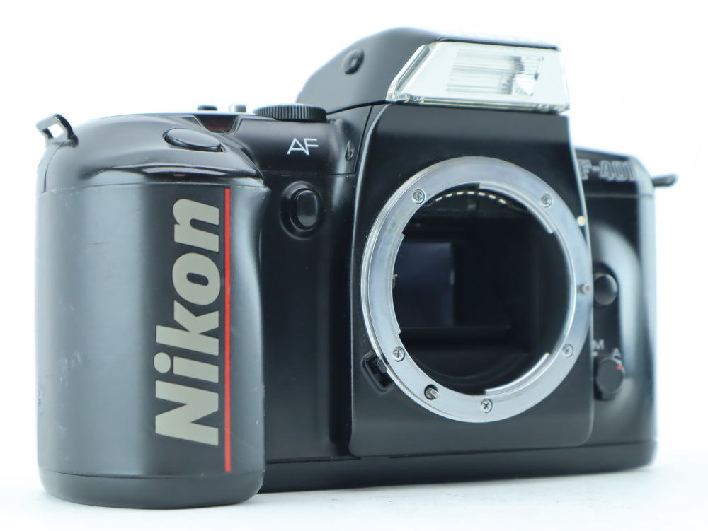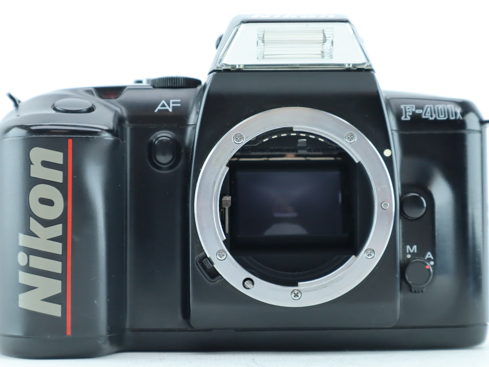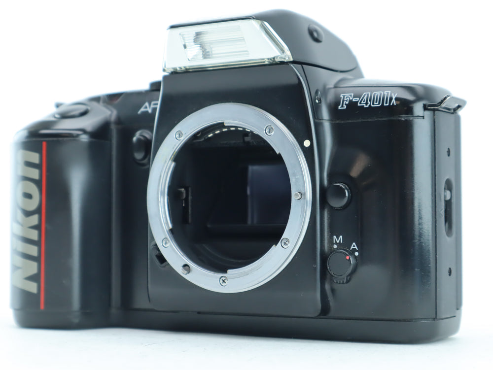 The Nikon F-401X is a beginner-friendly autofocus 35mm film SLR camera featuring full auto exposure, TTL metering, and a built-in pop-up flash. With its solid build and Nikon’s trusted F-mount compatibility, it's a great camera for those starting out in film photography or looking for a reliable, automatic SLR experience.