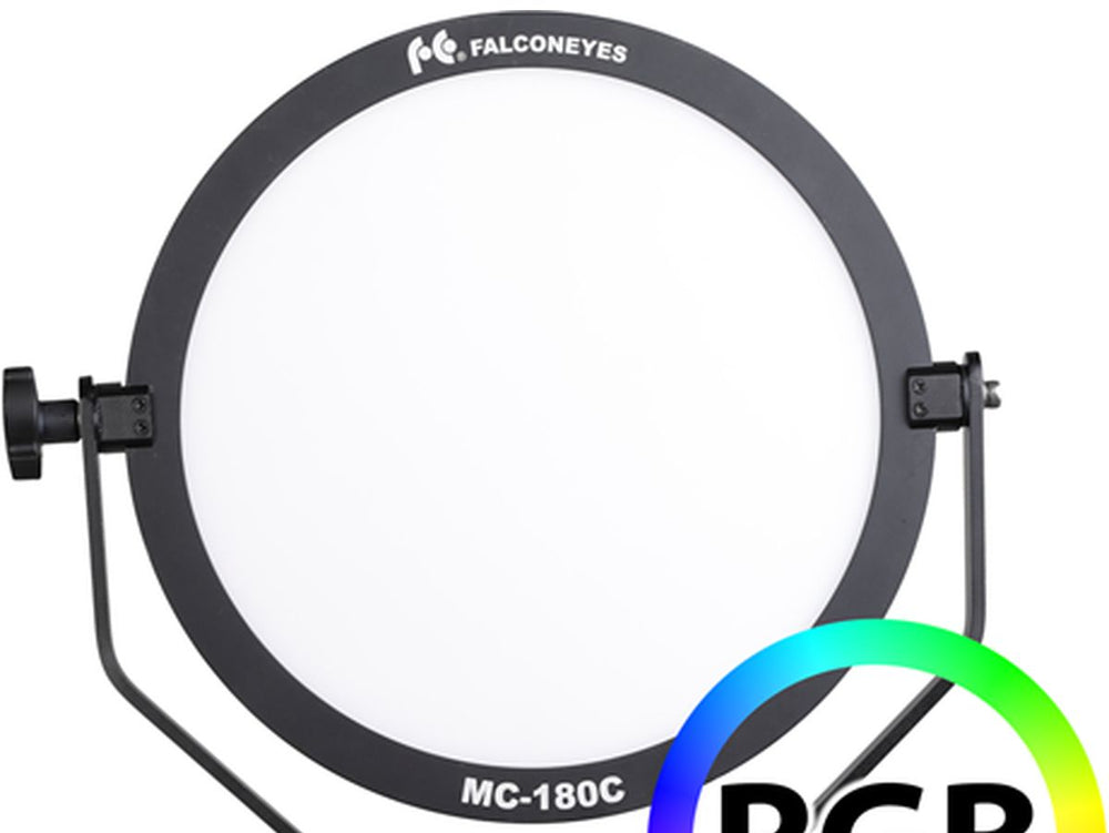 The Falcon Eyes RGB LED Light MC-180C is a versatile and flat, circular LED solution designed to let you customize your lighting to perfection. This adjustable LED lamp allows for modifications in color composition, color temperature, and brightness. It is equipped with a U-bracket for easy attachment to a light stand, making it an ideal choice for both studio and on-location photo and video shoots.
