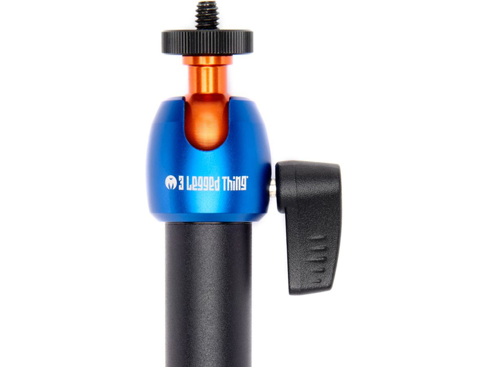 The adaptable '3 Legged Thing' Auxiliary Flexi Arm for CDMS is designed to clamp onto any pole with a diameter ranging from 17 to 23 mm. It boasts a compact omni-directional ball head with 1/4"-20 thread mount. The support arm, with its 1/4"-20 inner thread, transforms into a swing arm when linked with the clamp arm, perfectly complementing the CDMS.