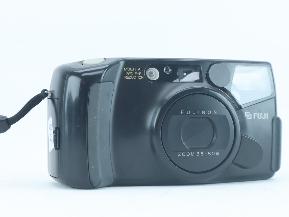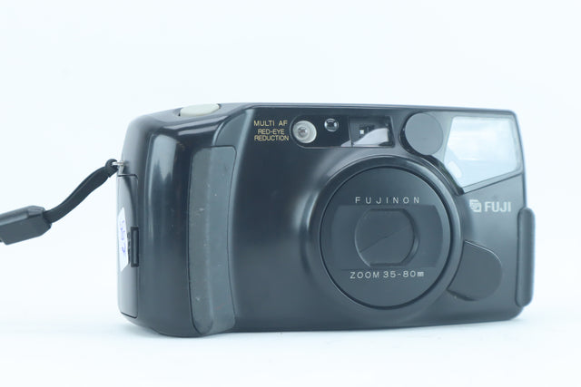 This Fuji DL-1000 Zoom with serial number 70111684 is a practical 35mm compact film camera equipped with a Fujinon 35–80mm zoom lens. It features automatic exposure, autofocus and red-eye reduction, making it a user-friendly camera for travel and everyday photography. The zoom range provides flexibility for portraits, street scenes and family snapshots, while the compact design ensures easy handling.