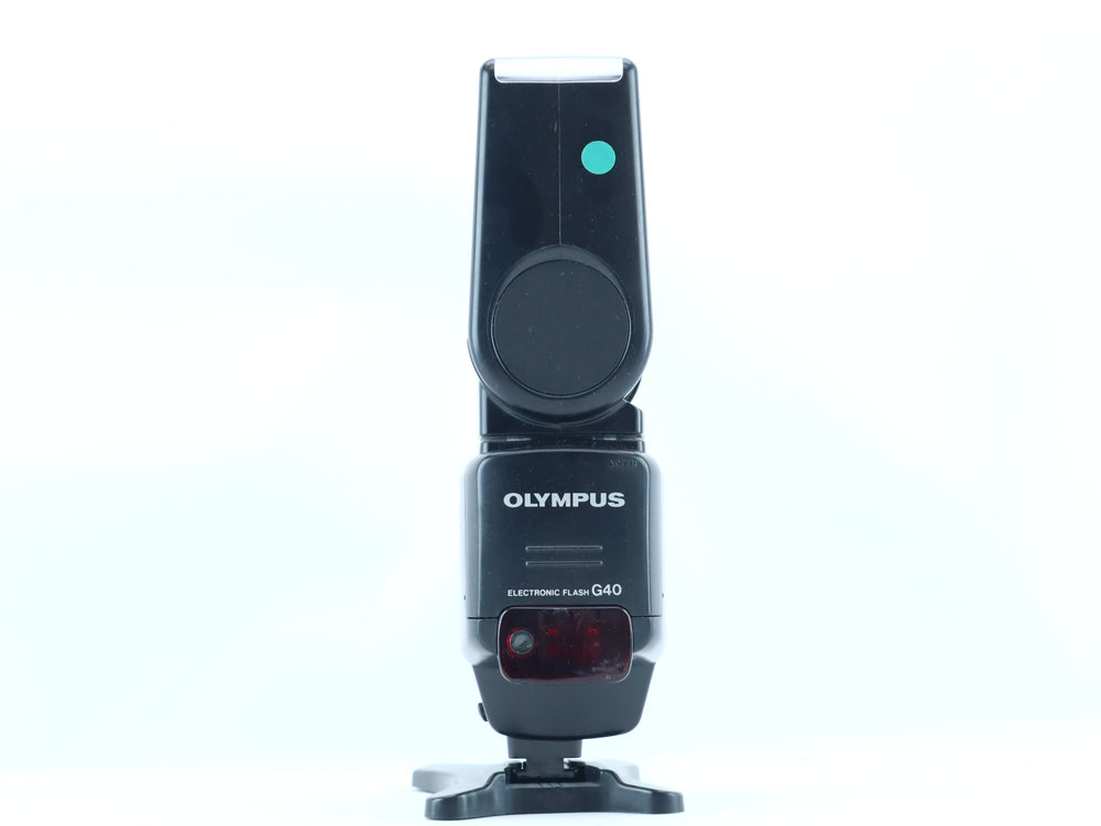 The Olympus Electronic Flash G40 is a dedicated hot-shoe flash unit designed for the Olympus OM-system and early Olympus compact SLRs.