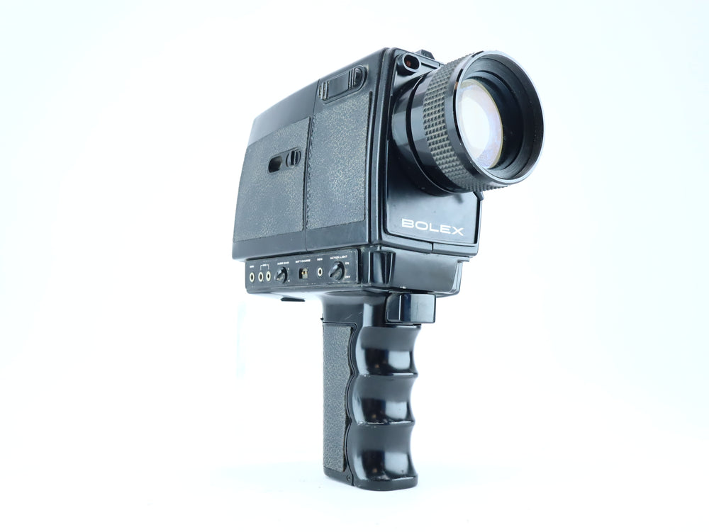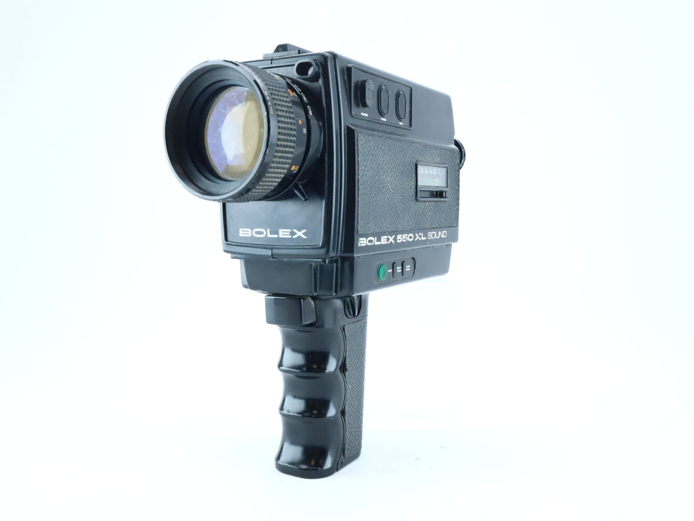This Bolex 550 XL Sound is a classic Super 8 film camera, equipped with the fast Bolex Vario 8–40mm f/1.2 zoom lens. With its solid build and reliable motor-driven transport, the 550 XL Sound is a popular choice among filmmakers who want to shoot real Super 8 footage with synchronized audio.