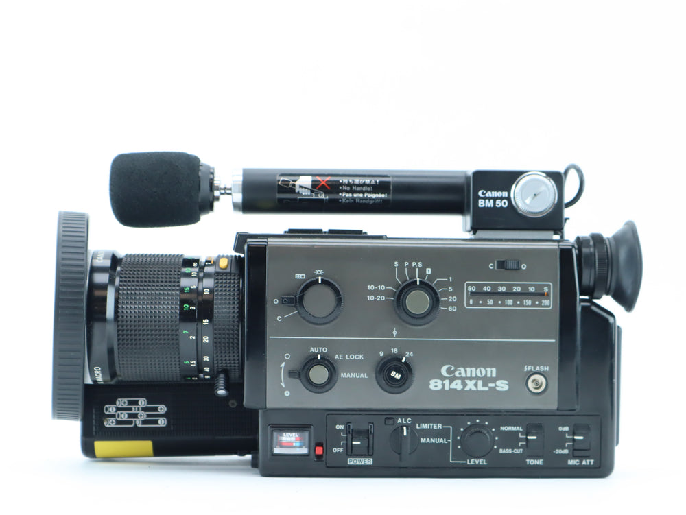 The Canon Auto Zoom 814XL-S is a professional-grade Super 8 sound movie camera, praised for its advanced features, ultra-quiet operation, and superb image quality. It features a fast and sharp 7–56mm f/1.4 zoom lens with macro capability, electronic exposure control, and support for low-light (XL) filming. Built with precision in Japan, the 814XL-S remains one of the most respected Super 8 cameras ever made.