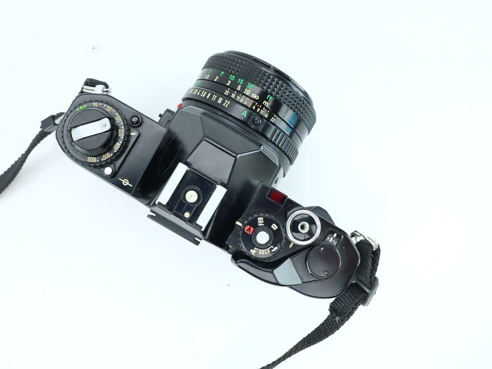 The Canon AV-1 is a 35mm SLR camera introduced in 1979, designed with aperture-priority auto exposure — a perfect match for photographers who want creative control over depth of field while the camera handles the shutter speed. Paired with the Canon FD 50mm f/1.8 standard lens, this setup is compact, sharp, and ideal for everyday photography, portraits, and travel.