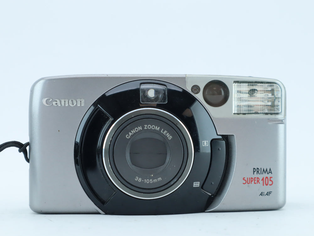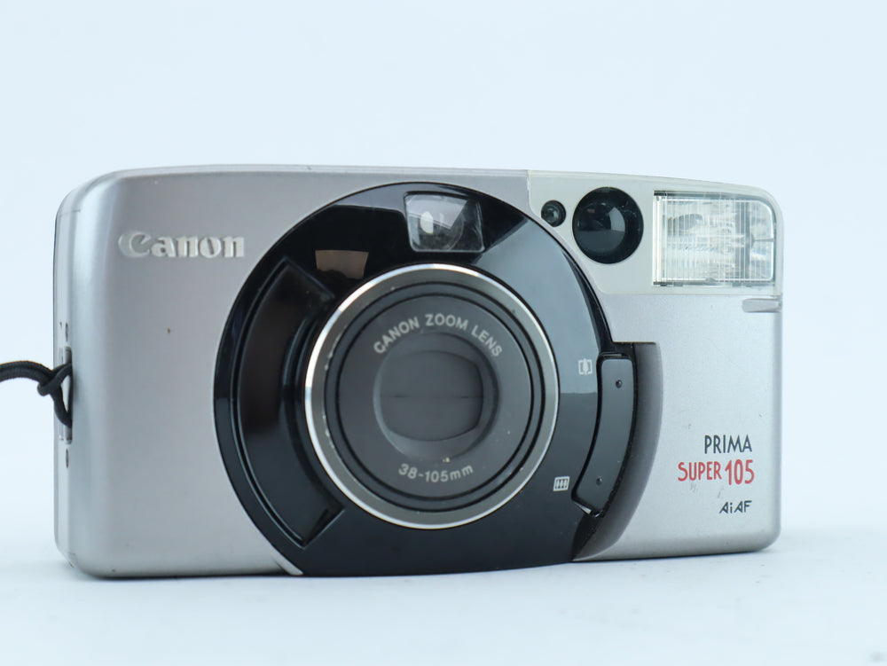 The Canon Prima Super 105 (also known as Sure Shot 105 Zoom in some regions) is a high-quality compact 35mm film camera featuring a sharp 38–105mm Canon zoom lens. Built for simplicity and performance, it’s perfect for travelers, casual shooters, and anyone looking to return to film with a reliable point-and-shoot experience.