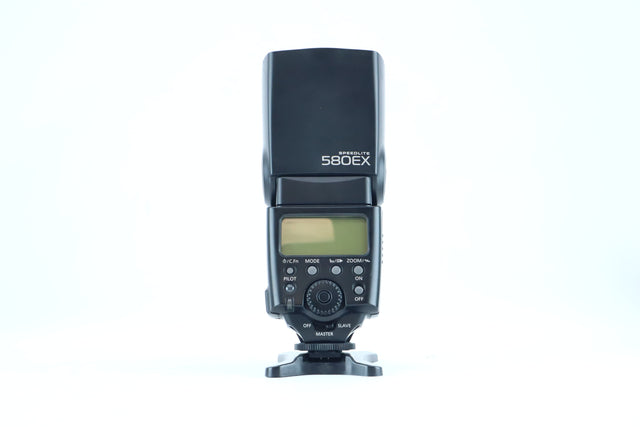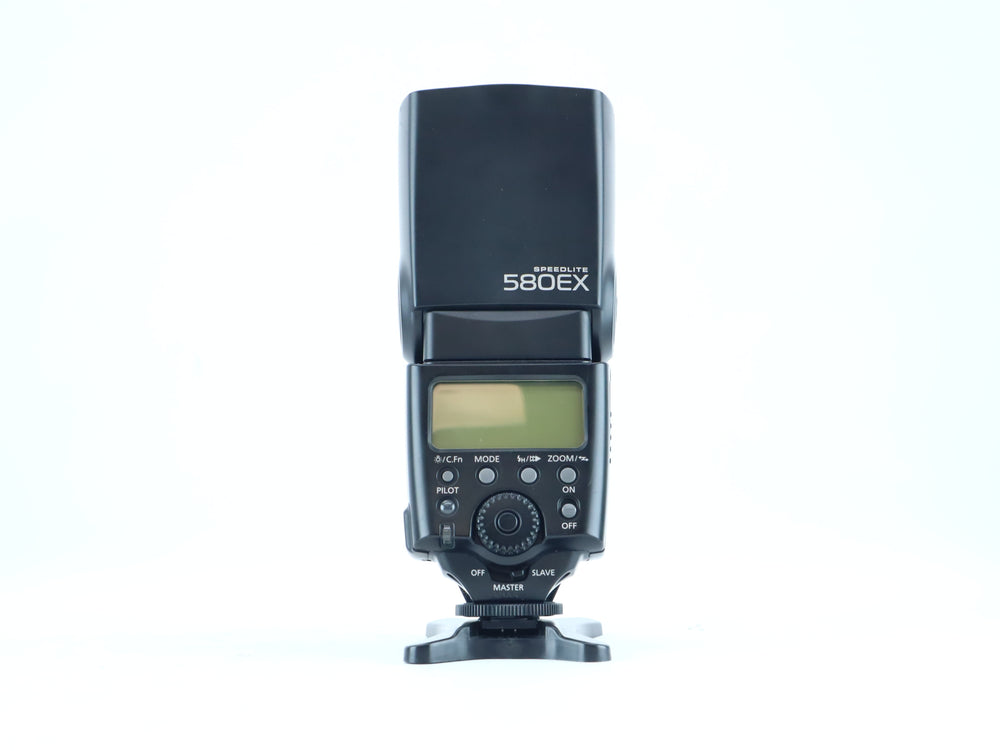 The Canon Speedlite 580EX is a professional-grade external flash designed for Canon EOS cameras. With full E-TTL / E-TTL II compatibility, high guide number, and advanced features like zooming flash head, manual controls, and wireless master/slave capability, it’s a highly versatile unit for both on- and off-camera use.