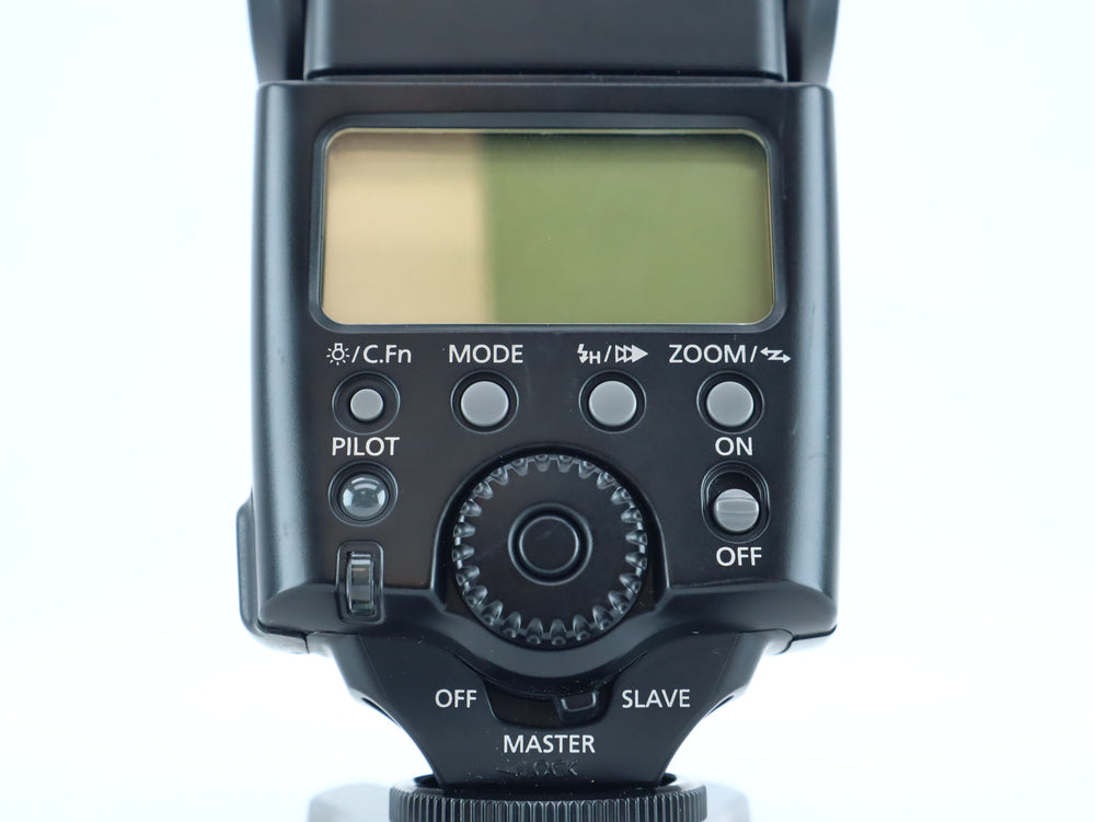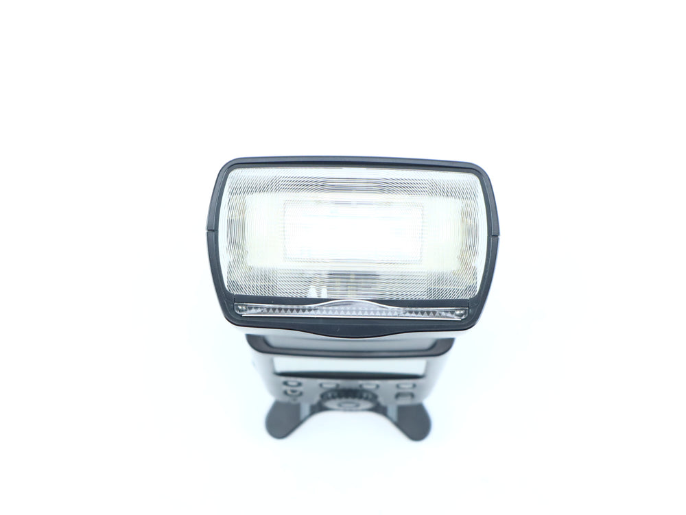 Used – Good condition. Fully functional. Flash head moves smoothly, LCD display and buttons responsive. Light signs of use on housing.