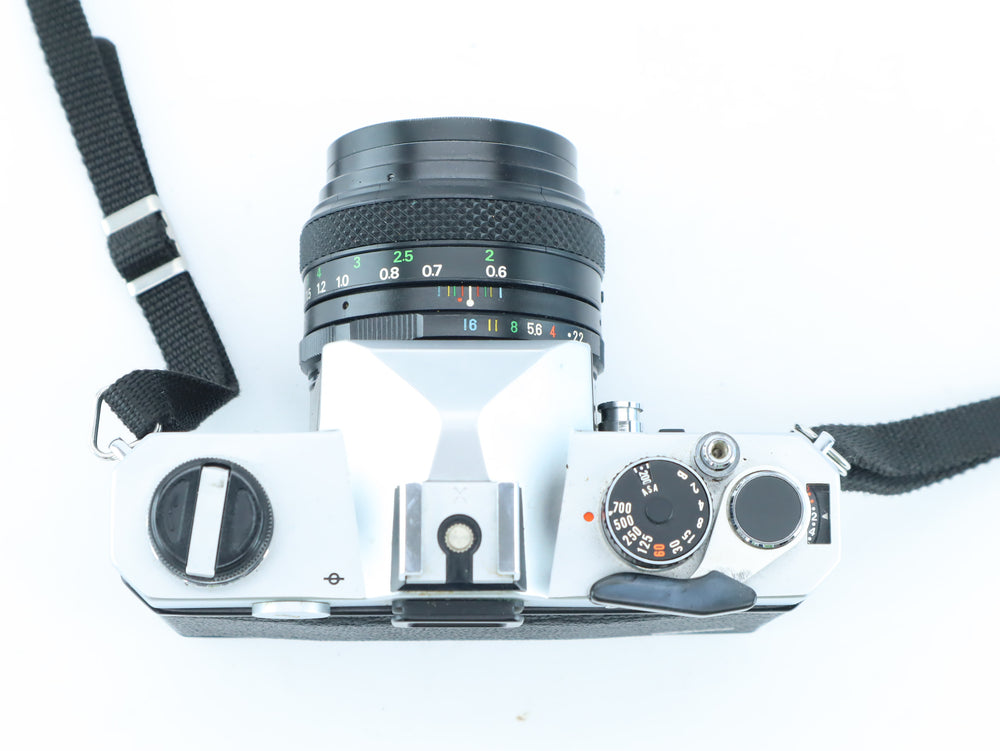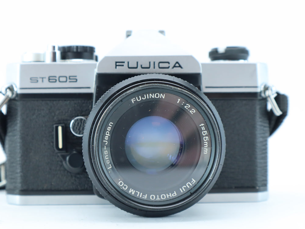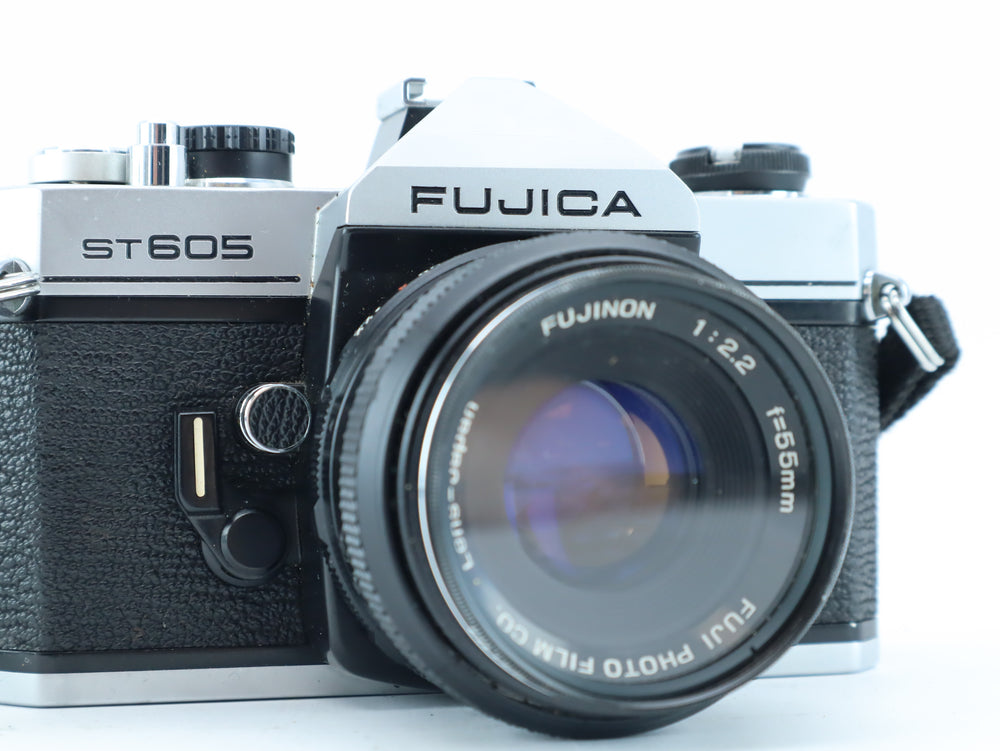 The Fujica ST605 is a well-regarded 35mm mechanical SLR camera, made by Fuji Photo Film Co. in the 1970s. It features a universal M42 screw mount and a fully mechanical shutter, making it a reliable choice for photographers who enjoy full manual control. Paired with the Fujinon 55mm f/2.2, this kit offers classic rendering, sharp results, and smooth manual focus – perfect for portraiture, street photography, and everyday shooting.