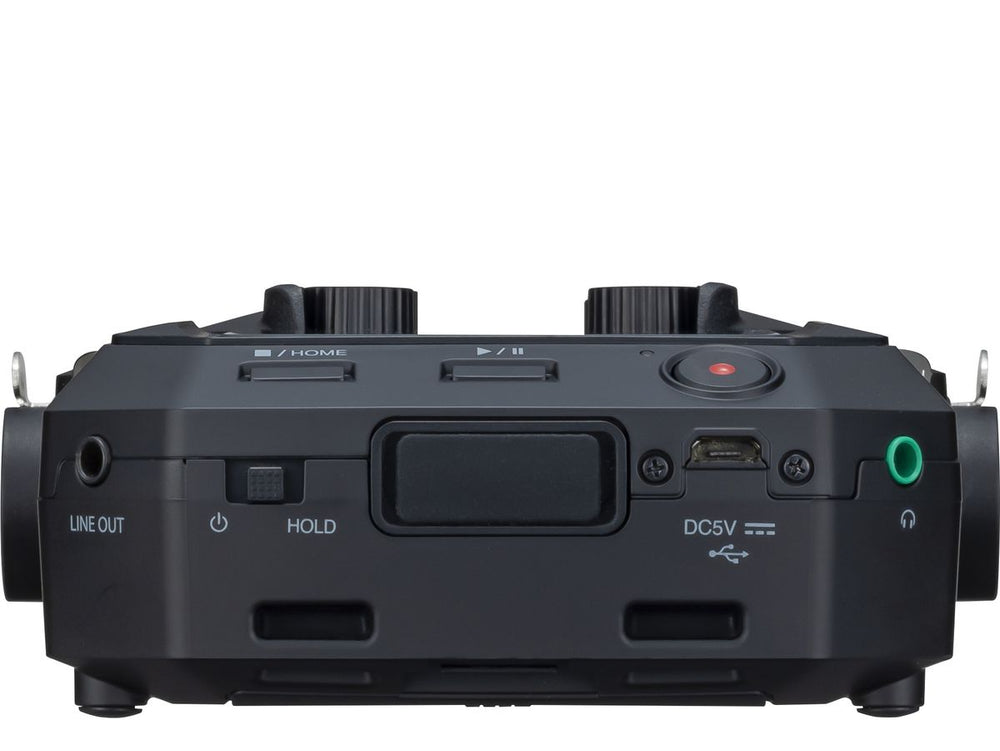 - Two extra XLR/TRS jacks with Hi-Z switches capable of capturing line level signals and microphones, or recording audio directly.