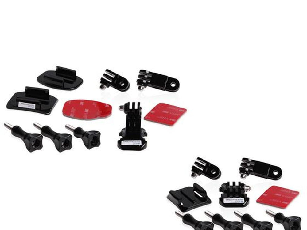 The PRO-Mounts Helmet Front & Side Mount kit includes two secure mounts for your GoPro action camera. These mounts are not limited to helmet usage but can be attached to diverse surfaces like motor equipment. Strong adhesive strips, which can be removed using a hairdryer, are also included for easy attachment.