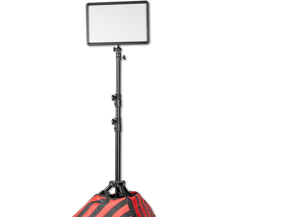 This LED lamp is equipped with six groups and sixteen channels. The color temperature and brightness can be adjusted remotely using the included wireless remote control. Its large LCD screen allows users to easily read the set values. The LED lamp can be powered either by the included AC adapter or by two optional NP-F970 li-ion batteries (sold separately).
