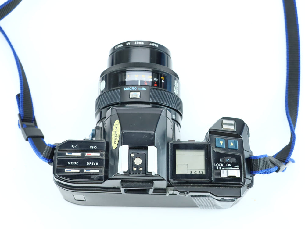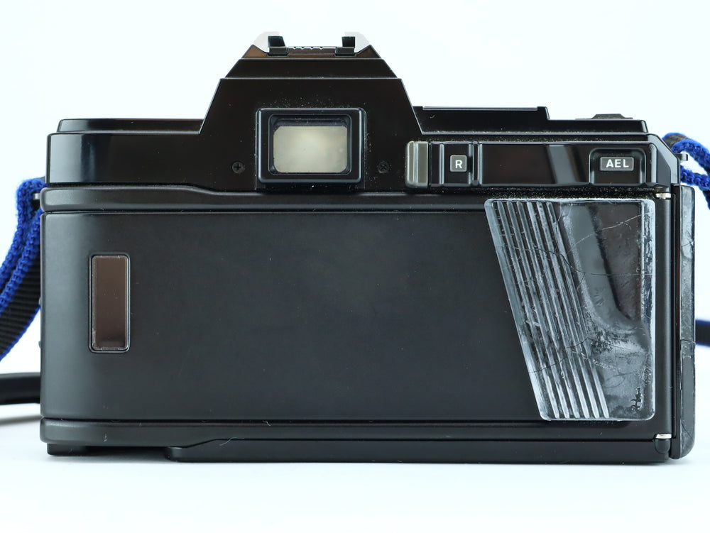 The Minolta 7000, also known as the Maxxum 7000 or Alpha 7000 depending on the market, was a groundbreaking 35mm SLR introduced in 1985. It was the first SLR camera with a fully integrated autofocus motor and electronics, setting the standard for modern autofocus systems. The camera features full program, aperture-priority, shutter-priority, and manual exposure modes, as well as DX-coded ISO reading and an LCD display.