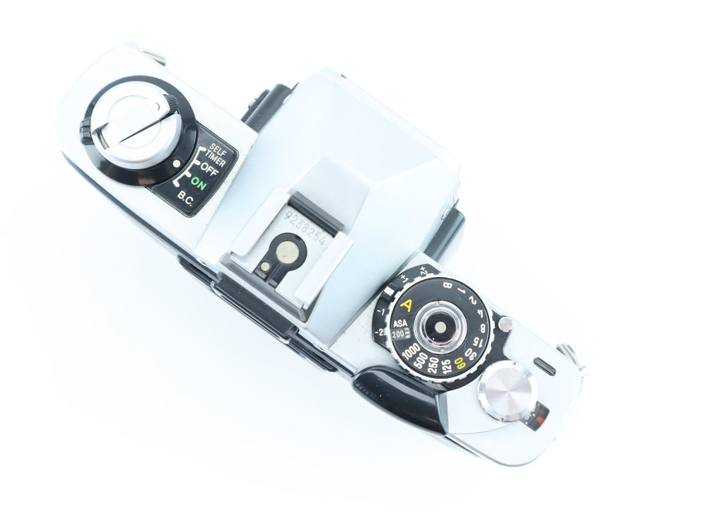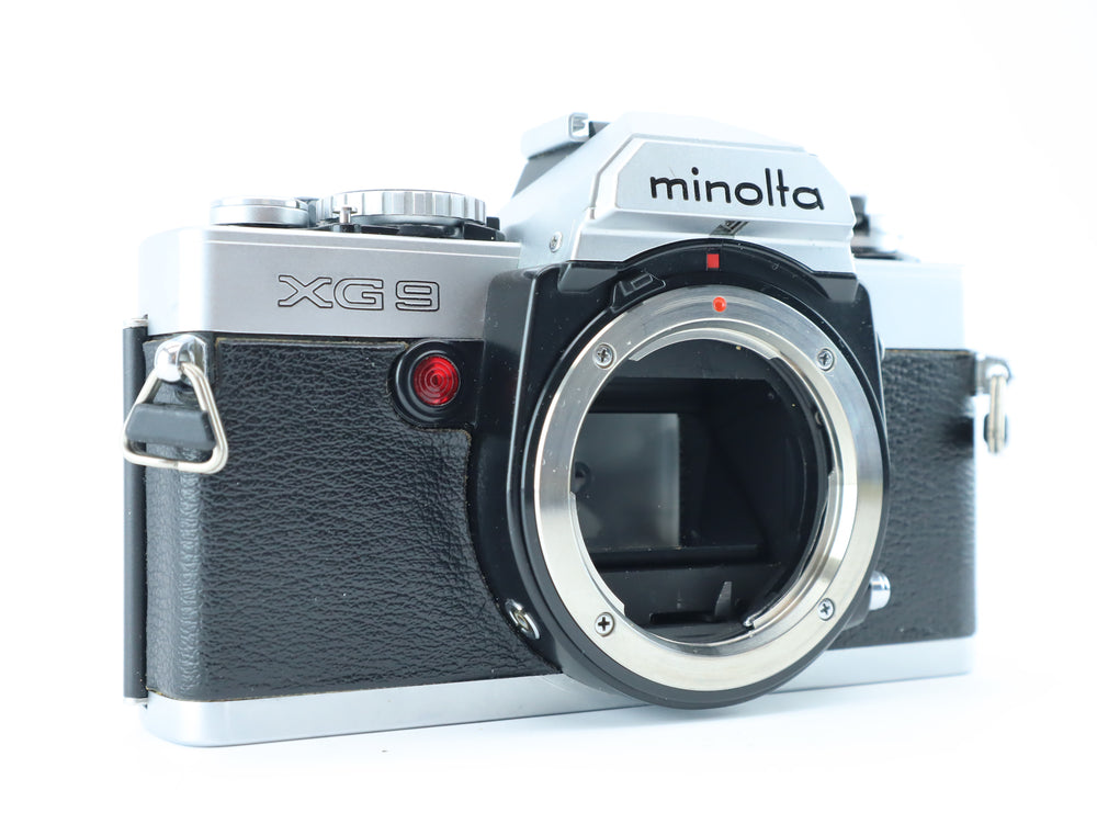 The Minolta XG-9 is a well-balanced and compact 35mm SLR camera, offering both aperture priority automatic exposure and manual control, making it ideal for learning film photography or working with precision. Designed for the Minolta SR mount system, it is compatible with a wide range of Minolta MC and MD lenses.