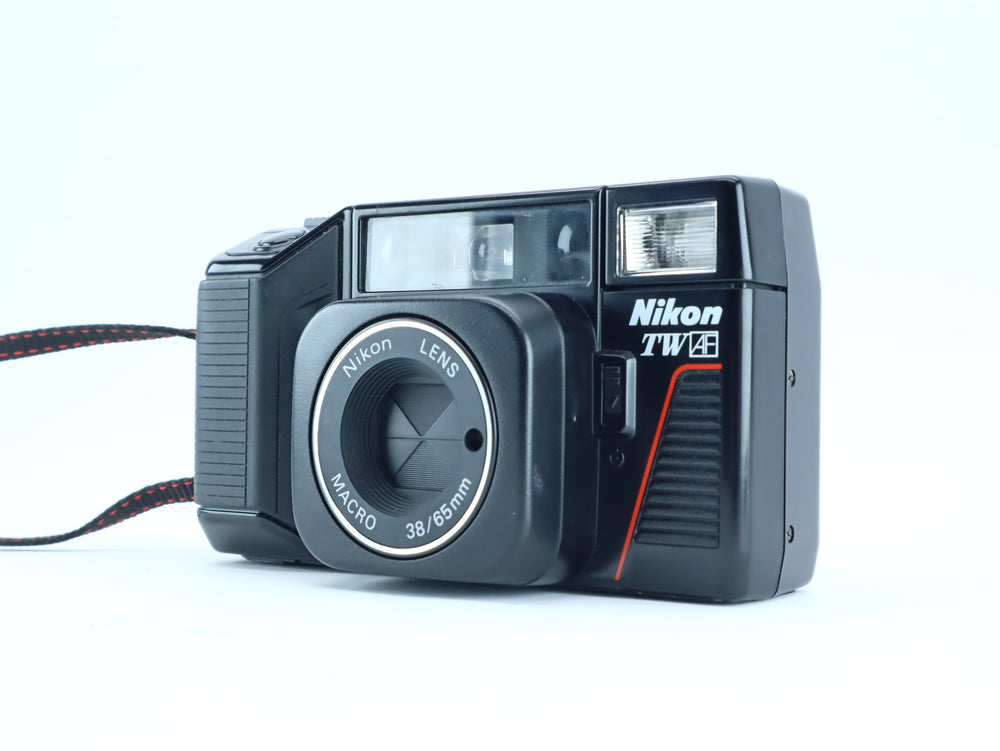 The Nikon L35TW AF is a premium 35mm compact camera from the late 1980s, part of Nikon’s acclaimed L-series. It features a dual focal length Nikkor 38mm and 65mm zoom system, allowing quick switching between wide and telephoto perspectives. Built with Nikon’s renowned optical quality and a reliable autofocus system, the L35TW delivers sharp, contrasty images with classic color rendering. Its built-in flash and macro capability make it a versatile choice for travel and everyday photography.