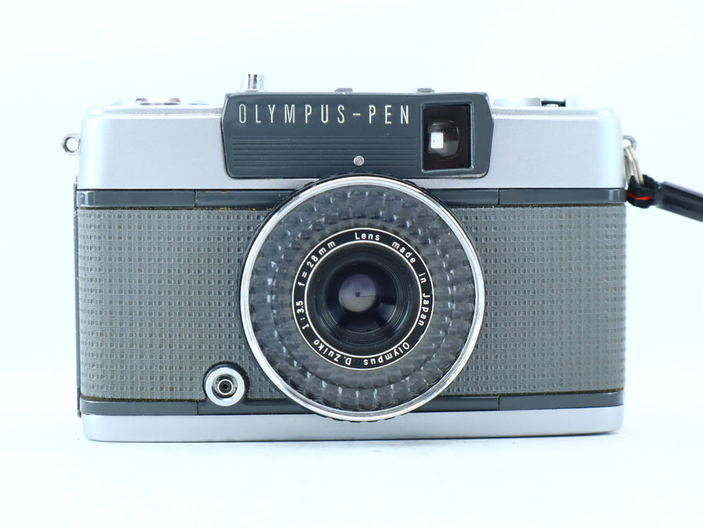 Condition Report Good condition. The camera body (S/N: 3576570) shows normal signs of light use and minor cosmetic surface marks consistent with its age. The 28mm D.Zuiko lens is clear, free from fungus or haze. The selenium light meter has been tested and is responsive, with the red underexposure flag appearing correctly in low light. The film transport and shutter mechanism are fully functional.