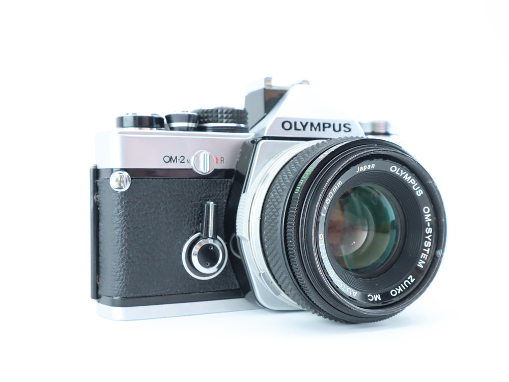 The Olympus OM-2N is a refined version of the original OM-2 — a 35mm SLR with aperture-priority auto exposure and one of the most advanced TTL metering systems of its time. It combines electronic precision with a compact, mechanical feel and is part of the renowned OM system, known for its small form factor and high-quality optics.