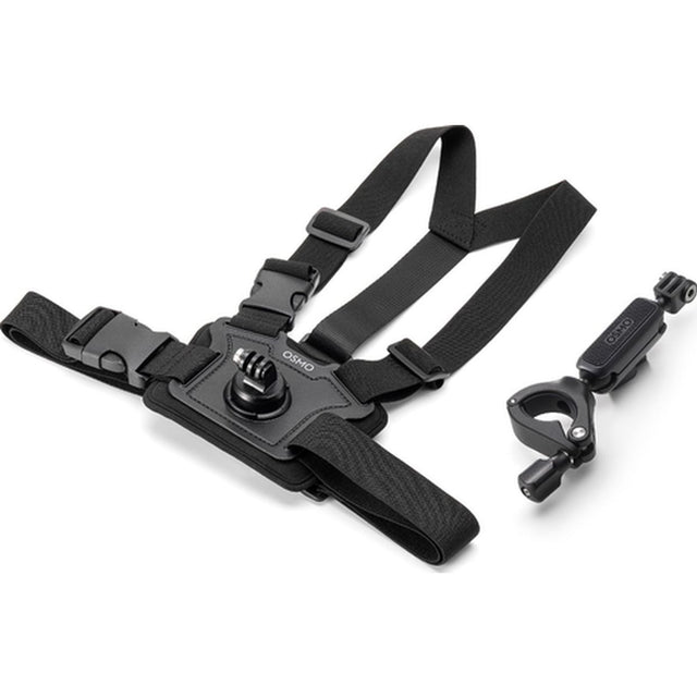 The DJI Osmo Action Cycling Accessories Bundle is designed for enthusiasts who want to capture their cycling adventures with ease. This kit includes both the Chest Strap Mount and the Handlebar Mount, making it simple to attach your Osmo Action 3 to either your chest or bike handlebars.