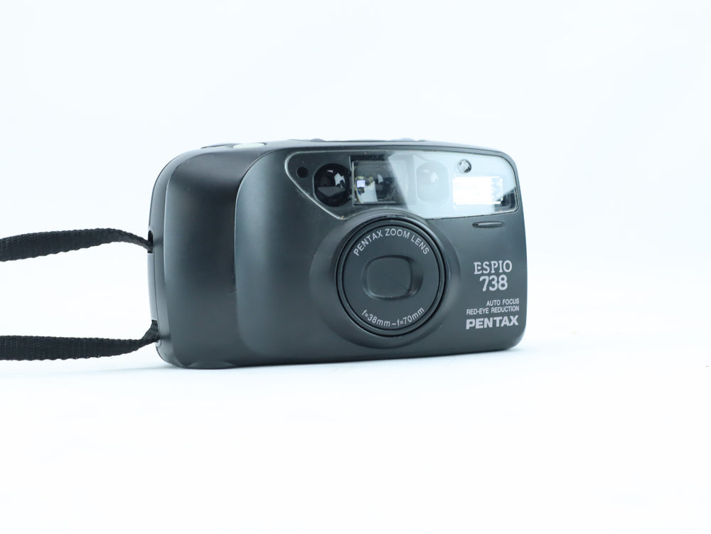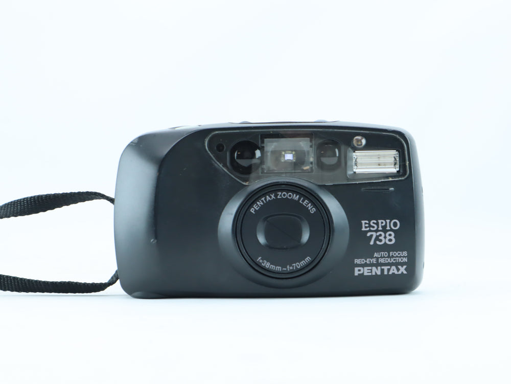 The Pentax Espio 738 AF is a compact 35mm film camera designed for easy and reliable everyday use. This example comes with serial number 4872962 and features fully automatic operation with autofocus, making it a practical choice for casual film photography and travel.