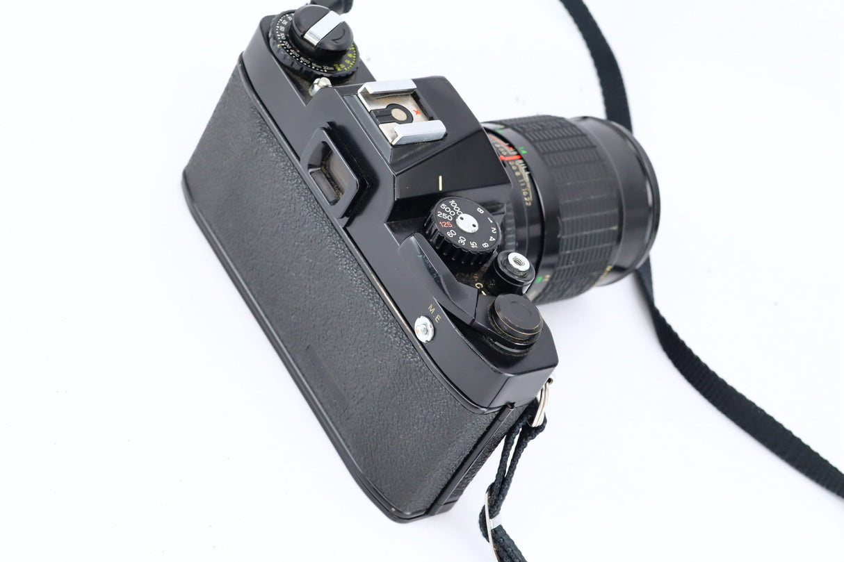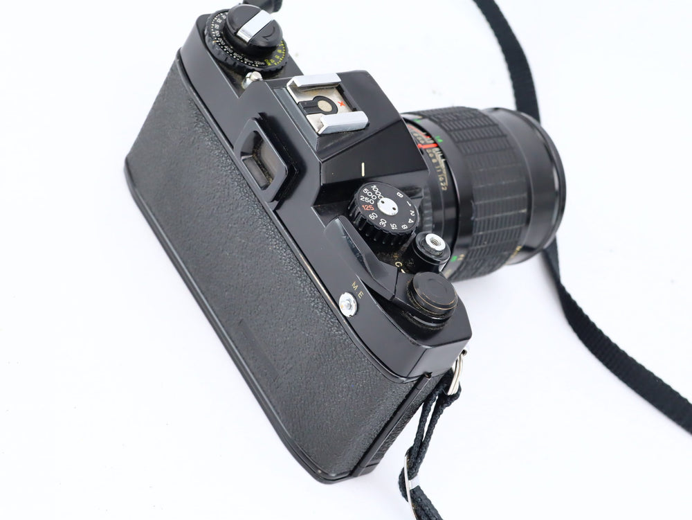 The Ricoh XR-1, paired with the Sigma Mini-Tele 135mm f/3.5 lens, offers a versatile and compact telephoto solution for film photography. The XR-1 is a reliable 35mm SLR camera known for its user-friendly controls and solid performance, while the Sigma Mini-Tele lens provides excellent reach and sharpness for capturing detailed images from a distance. This combination is ideal for sports, wildlife, and portrait photography, delivering both quality and convenience in a portable package.