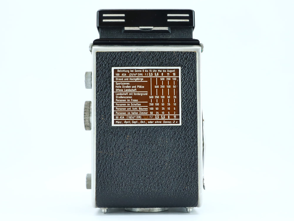 To give you the most accurate listing, I’ll need to know the exact model name or the lens name (e.g., Tessar, Planar, Xenotar, and the lens’s aperture). However, here's a general description based on a standard Rolleiflex configuration: