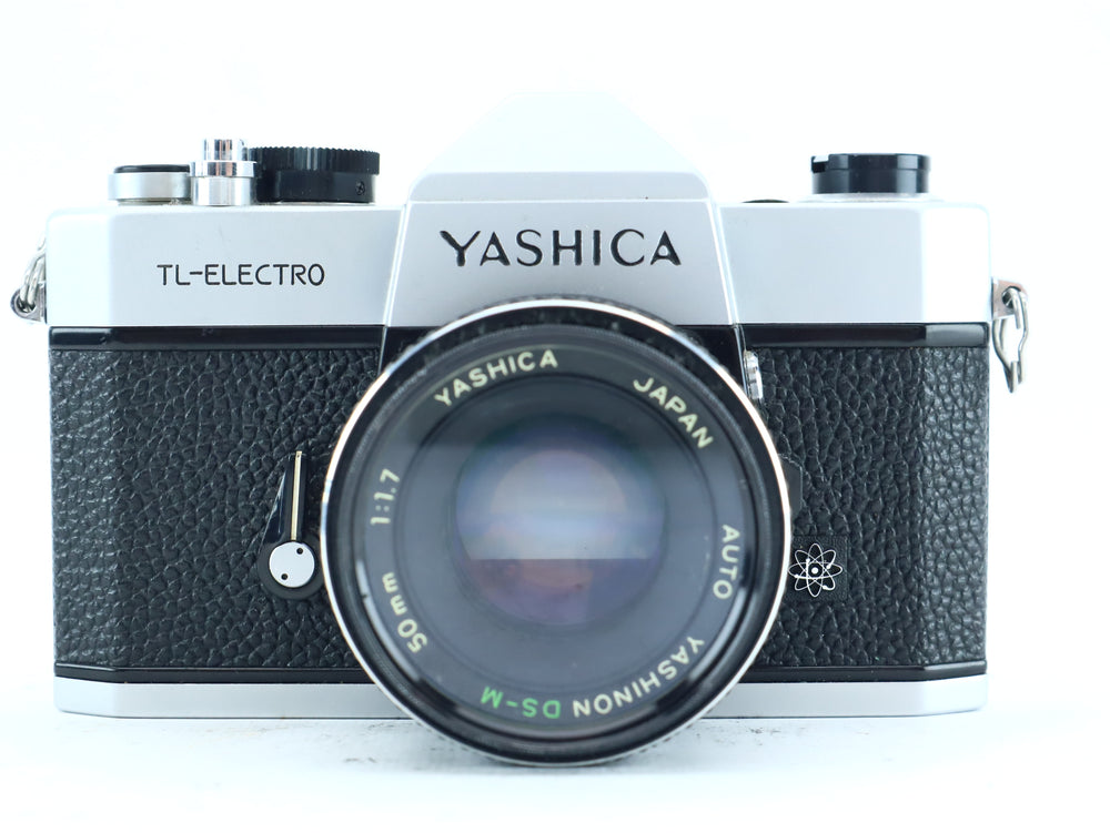 The Yashica TL Electro is a robust 35mm single-lens reflex (SLR) camera built with a universal M42 screw mount, making it compatible with a wide range of lenses. Paired with the sharp and fast Auto Yashinon 50mm f/1.7, this kit delivers excellent optical performance and a smooth shooting experience. The TL Electro features through-the-lens (TTL) metering with a unique red/green LED exposure system, offering precise manual exposure control.
