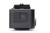 - Interchangeable Backs: The camera supports interchangeable film backs, enabling users to switch between different film types or formats mid-roll.