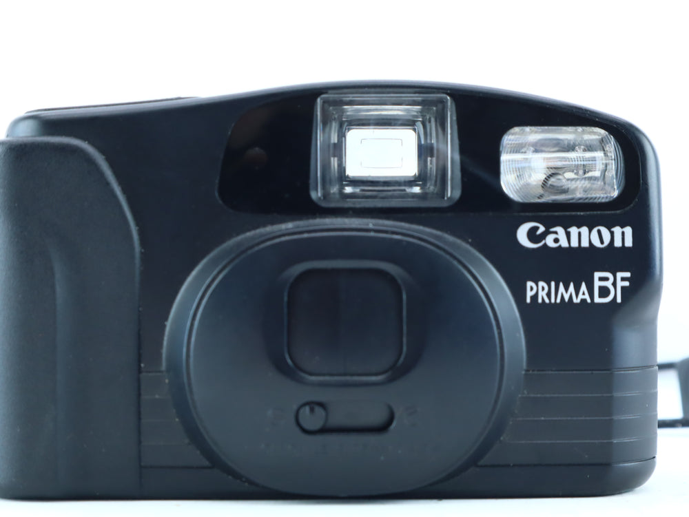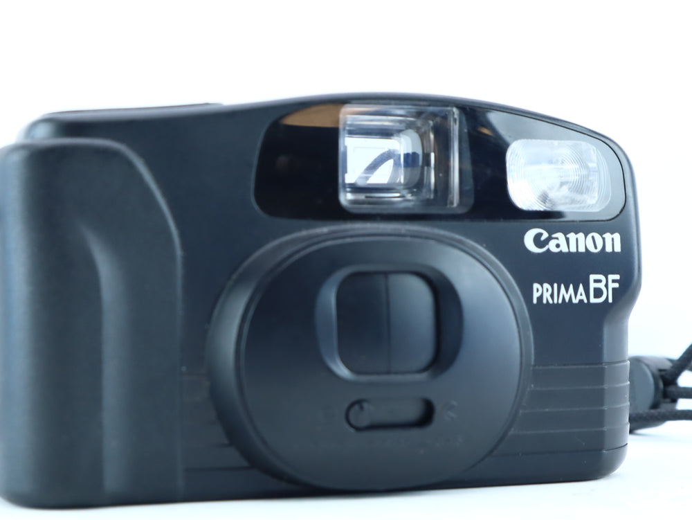 The Canon Prima BF (known as the "Snappy LX" in North America and "BF35" in Japan) is a classic 35mm point-and-shoot camera celebrated for its user-friendly design and oversized "Big Finder" (BF). This large, bright viewfinder makes framing shots effortless, especially for glasses wearers. Launched in 1992, it features a sharp Canon 35mm f/4.5 lens and a fixed-focus system that ensures you are always ready to capture a spontaneous moment without waiting for autofocus.Its fully automated film handling and built-in flash make it a reliable and nostalgic choice for anyone exploring analog photography.