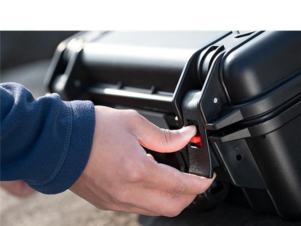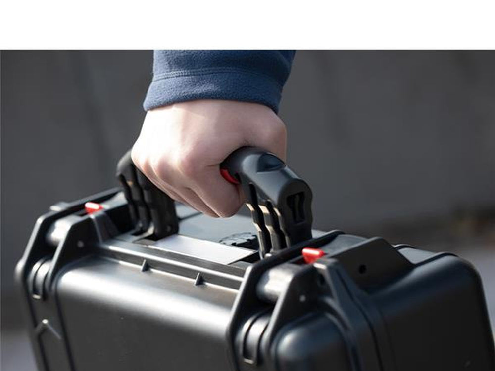 This drone case comes equipped with stainless steel locks, preventing any accidental opening during transport. Whether you venture into extreme conditions, you can trust this case to reliably protect your drone. It's completely waterproof when locked (IP67 certified) and can withstand temperatures ranging from -25° to +60° for extended periods. The case also incorporates a pressure compensation valve to avoid vacuum sealing. A convenient rubber handle tops off the outstanding features, ensuring easy transportation.