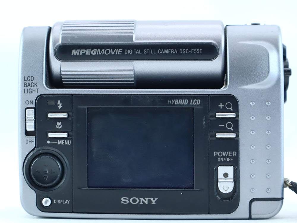The Sony Cyber-shot DSC-F55 is an early digital compact camera featuring a Carl Zeiss Distagon lens and a rotating hybrid LCD design. Developed by Sony, this model represents an important step in Sony’s digital camera history. Serial number: 15433.