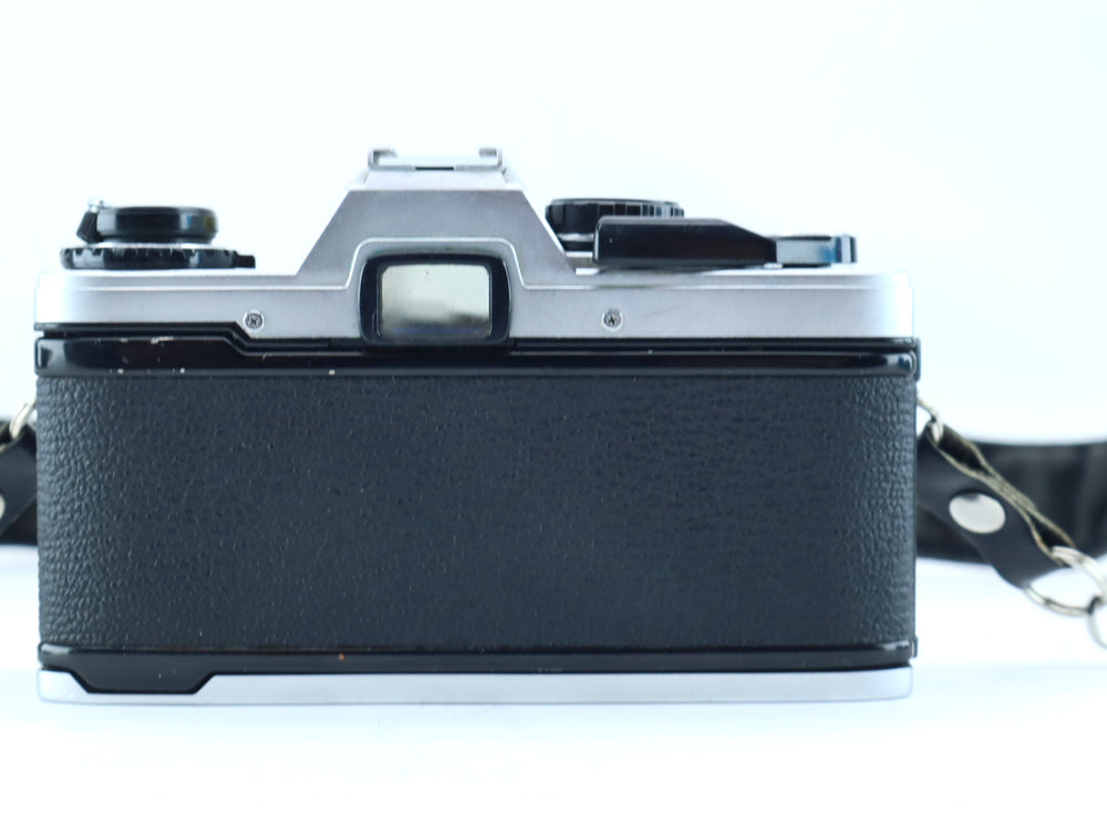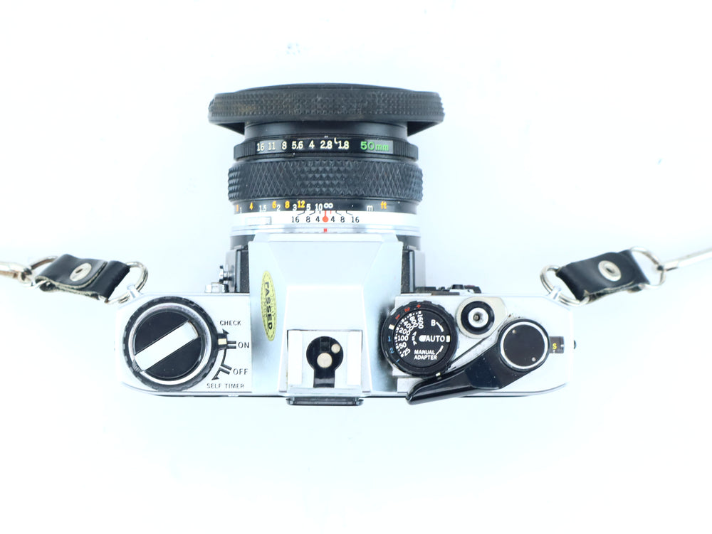 Used – Good condition. Shutter fires accurately, light meter responds, and film advance works smoothly. The Zuiko lens is clear, with smooth focus and clean aperture blades. Normal signs of use on body and lens barrel.