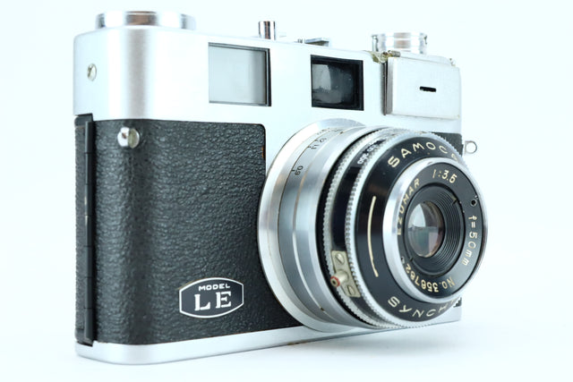 De Samoca 35 is een charmante, compacte 35mm zoeker camera gemaakt in Japan tijdens de jaren 1950. Hij is uitgerust met de originele Samoca Ezumar 50mm f/3.5 lens (serienummer 356782), die een scherp en contrastrijk beeld biedt met een klassieke weergave. Lichtgewicht en eenvoudig te gebruiken, dit is een geweldig startpunt voor vintage fotografie.