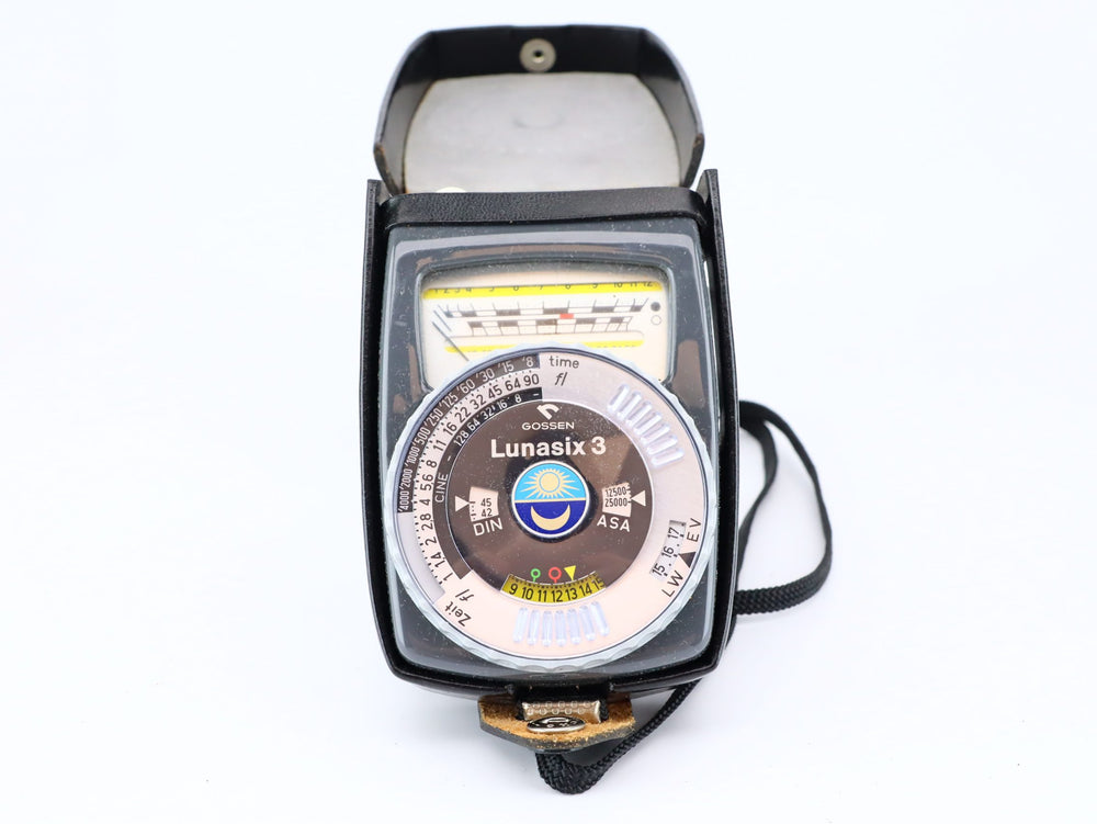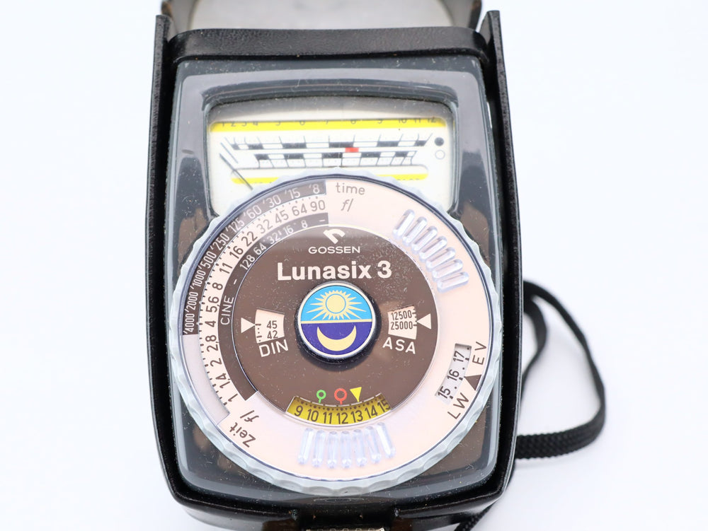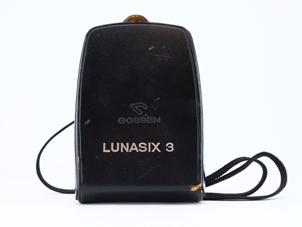 De Gossen Lunasix 3 is een professionele belichtingsmeter. De Lunasix 3 introduceerde de standaard incidentlichtkoepel en meter voorkant opening voor clip-on accessoires die op elke professionele Gossen meter te zien waren. Het wordt geleverd met de originele hoes.