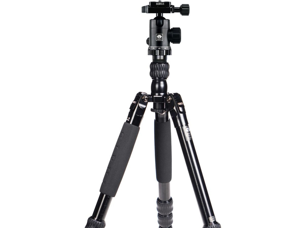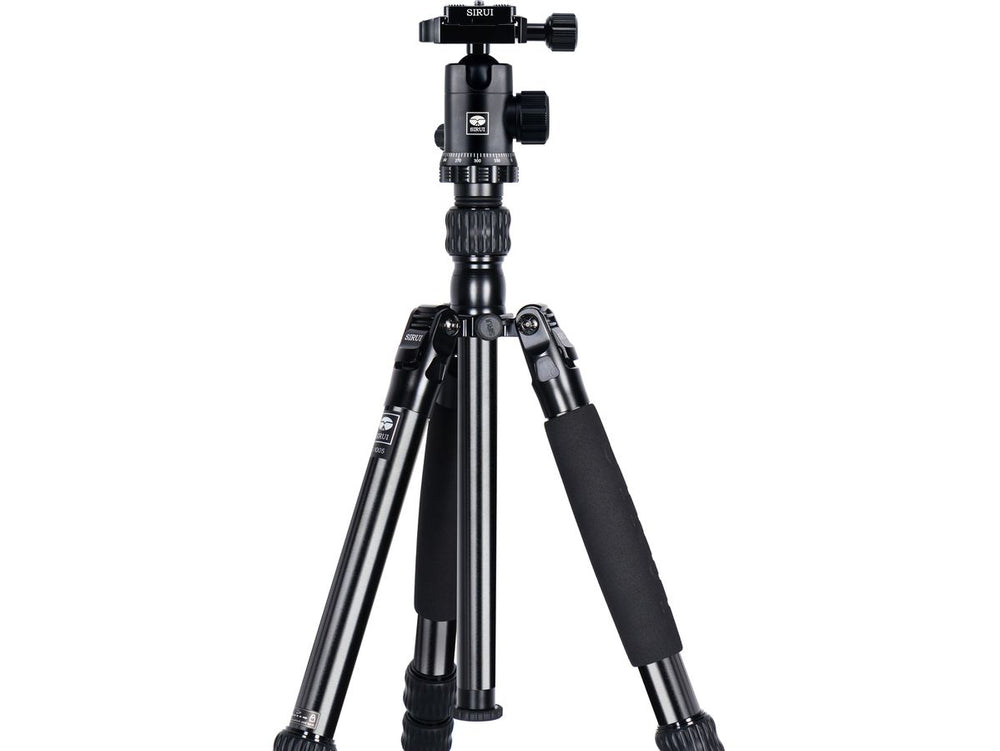 The Sirui Traveller T-1005 tripod equipped with an E-10 ball head is both versatile and portable, perfect for travel. One leg can be unscrewed and converted into a fully equipped monopod, with a maximum height of 160 cm in combination with the provided E-10 ball head. In addition, the head contains a water level for quick alignment and 90° notch for vertical camera orientation.
