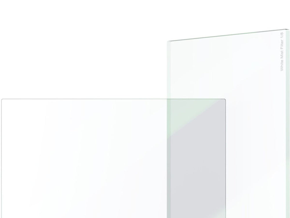 The carefully polished edges of the White Mist Filter yield advantages such as resistance to mold, water, oil, and scratches, enabling straightforward cleaning and storage. This filter, designed in a standard size of 4 x 5.65 inches (10.16 x 14.35 cm), is compatible with commonly available 4 x 5.65-inch matte boxes on the market.