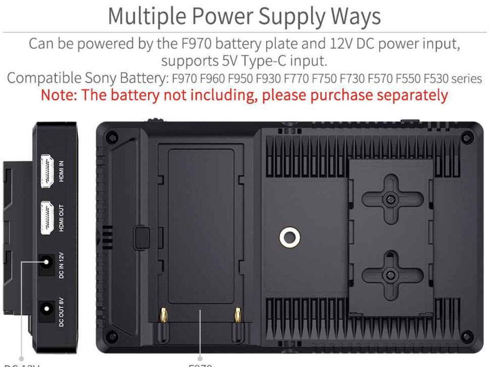 The F7 Pro is perfect as a camera monitor for DSLR and mirrorless cameras. Moreover, its powerful ancillary output (DC OUT 8V) can power cameras too. Coupled with a battery adapter cable (optional), the F7 PRO extends the camera's run time while offering an improved operational screen.