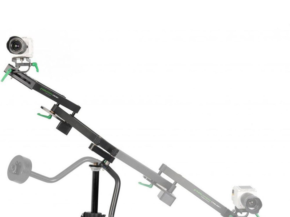 What sets it apart is that the camera's movement adjusts according to the motion of the arm. If the arm moves in an outward curve, the camera remains focused on the centre of the curve. Similarly, when the arms are positioned for a bend with a smaller radius, the camera automatically adjusts to maintain its focal point at the curve's centre. By positioning the arms at varying angles relative to each other, the C-Pan Arm II offers almost limitless curved motion.