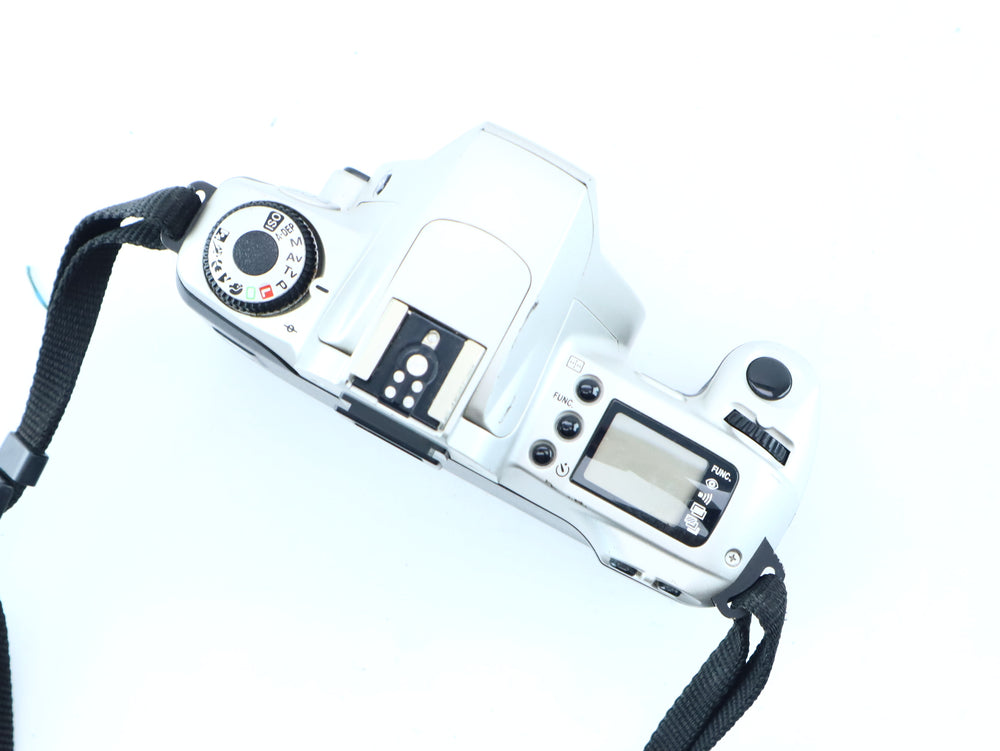 Condition Used – Good condition This Canon EOS 300 has been inspected and is in good working order. The 7-point autofocus system is responsive and the shutter fires reliably at all speeds. The film compartment is clean, and the automatic film transport functions smoothly. The viewfinder is clear, and the external LCD display remains sharp and easy to read. The camera body shows light signs of use consistent with its age, but has been well-preserved and remains a solid choice for analog photography.