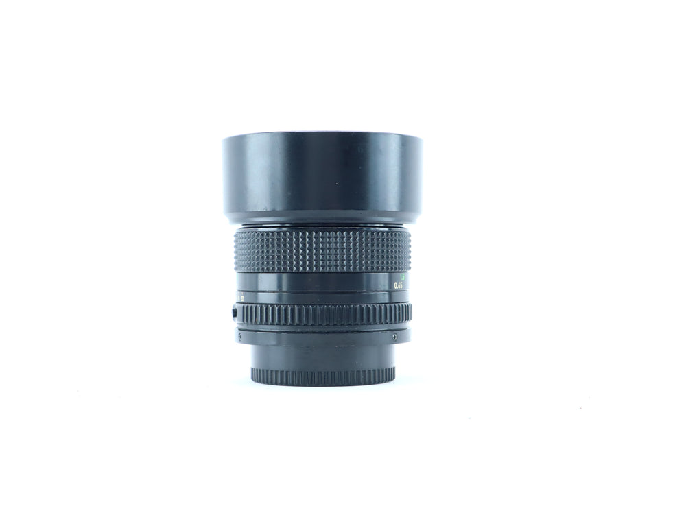 The Canon FD 50mm f/1.4 (S/N: 2178465) is a masterpiece of optical engineering, widely considered the "gold standard" of the FD mount. This legendary prime lens features Canon’s prestigious S.S.C. (Super Spectra Coating) to virtually eliminate flare and ghosting while ensuring rich, natural color balance. With its ultra-bright f/1.4 maximum aperture, it delivers exceptional low-light performance and a shallow depth-of-field with creamy, professional bokeh. Built with a robust metal barrel and a precision 8-blade diaphragm, this lens provides the mechanical soul and edge-to-edge sharpness that defined the professional analog era.