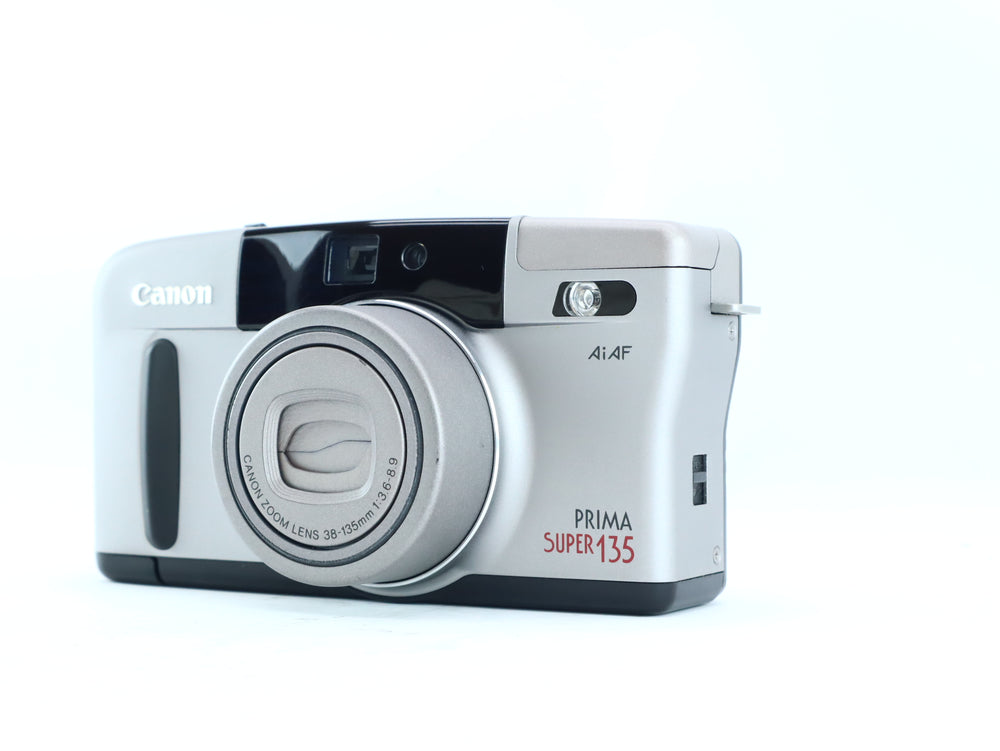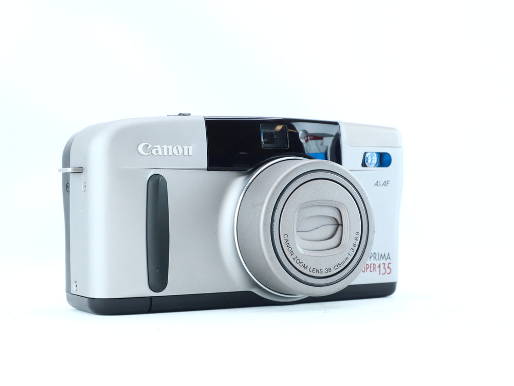 The Canon Prima Super 135 is a versatile 35mm compact autofocus camera with a wide-range 38–135mm zoom lens, ideal for travel and everyday photography.