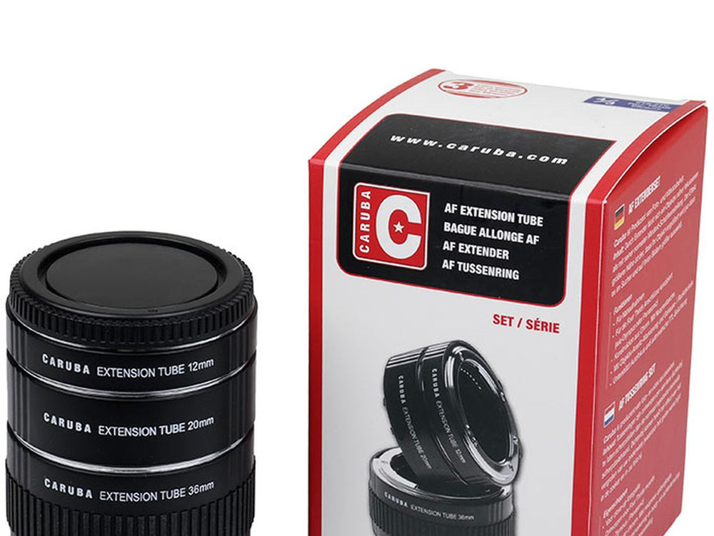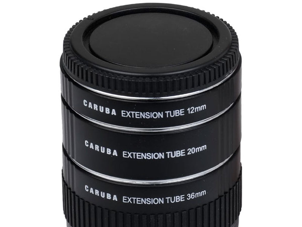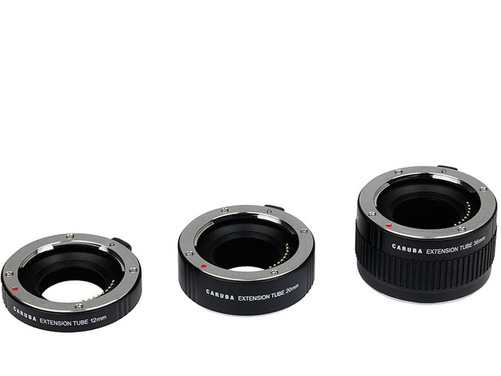 The Caruba Extension Tube Set designed for Olympus cameras includes three rings measuring 12mm, 20mm, and 36mm. These versatile tubes can be used individually or combined for even more extensive macro photography. As they contain no optical elements, they allow for detailed close-up shots without compromising image quality.