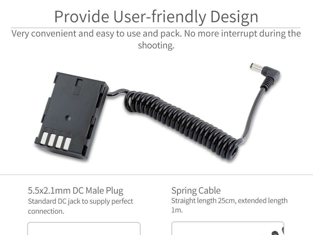 One of the standout features of the FZ100 dummy battery is the spring-coiled cable. Compact at 25cm in its condensed form, the cable can effortlessly reach a full meter when stretched, providing you with considerable flexibility when setting up your equipment.