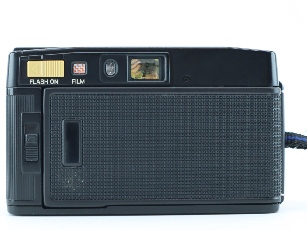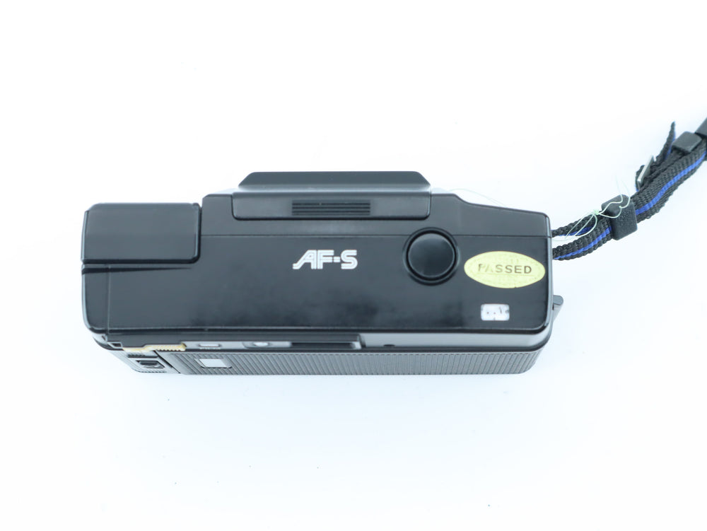 The Minolta AF-S, also known as the “Talker” in some versions, is a compact 35mm point-and-shoot camera from the 1980s. It features a sharp 35mm f/2.8 lens, active infrared autofocus, and a built-in flash—making it one of the more advanced point-and-shoot models of its time. With automatic exposure and film handling, it's perfect for anyone seeking simplicity and reliable image quality in a compact form.
