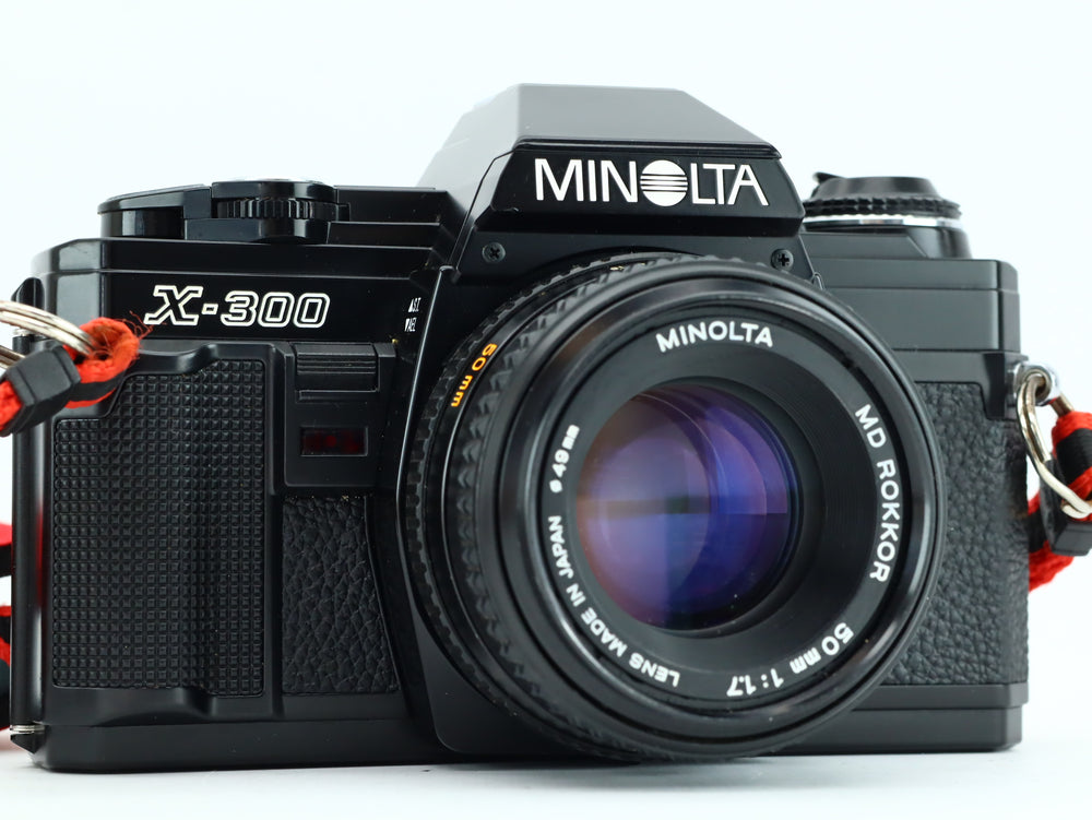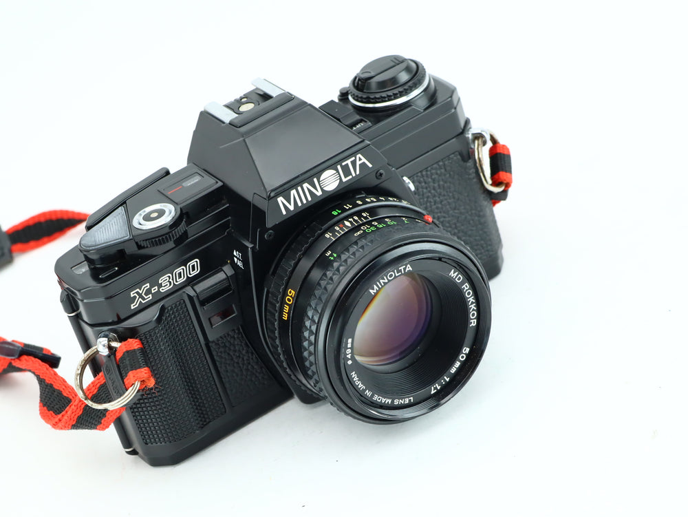 - Klassiek SLR-ontwerp: De Minolta X-300 heeft een duurzaam en gebruiksvriendelijk ontwerp, met handmatige bedieningselementen die je volledige controle geven over je fotografie.