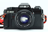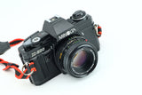Stap in de wereld van klassieke fotografie met de Minolta X-300, gecombineerd met de veelzijdige MD 50mm f/1.7 lens. Deze handmatige focus SLR-camera biedt een perfecte mix van eenvoud en functionaliteit, waardoor het een uitstekende keuze is voor zowel beginnende als ervaren filmfotografen. De MD 50mm f/1.7 lens, bekend om zijn scherpte en heldere diafragma, vult de X-300 aan, en biedt uitzonderlijke beeldkwaliteit en creatieve controle.