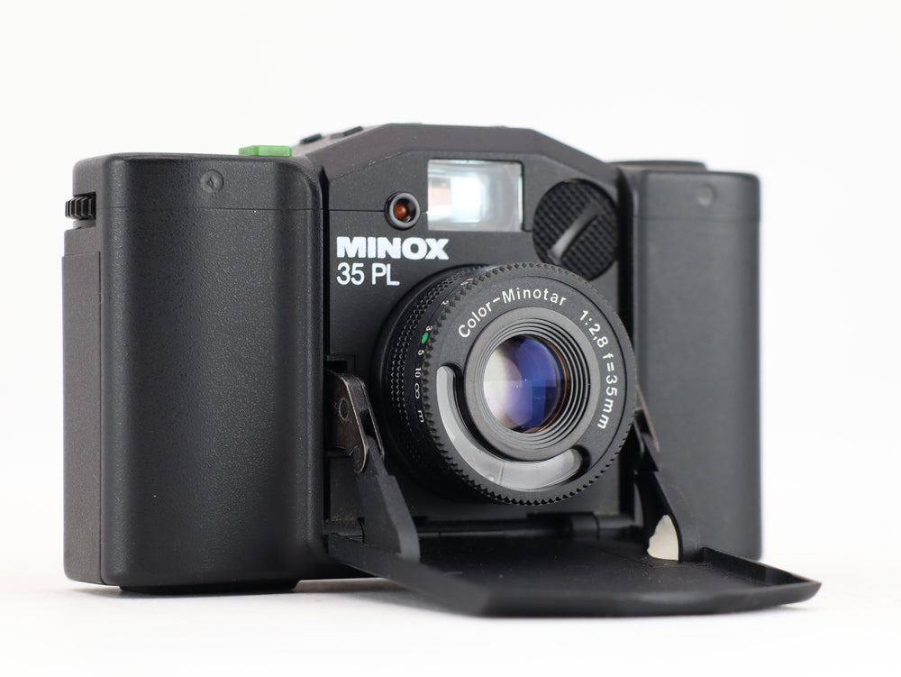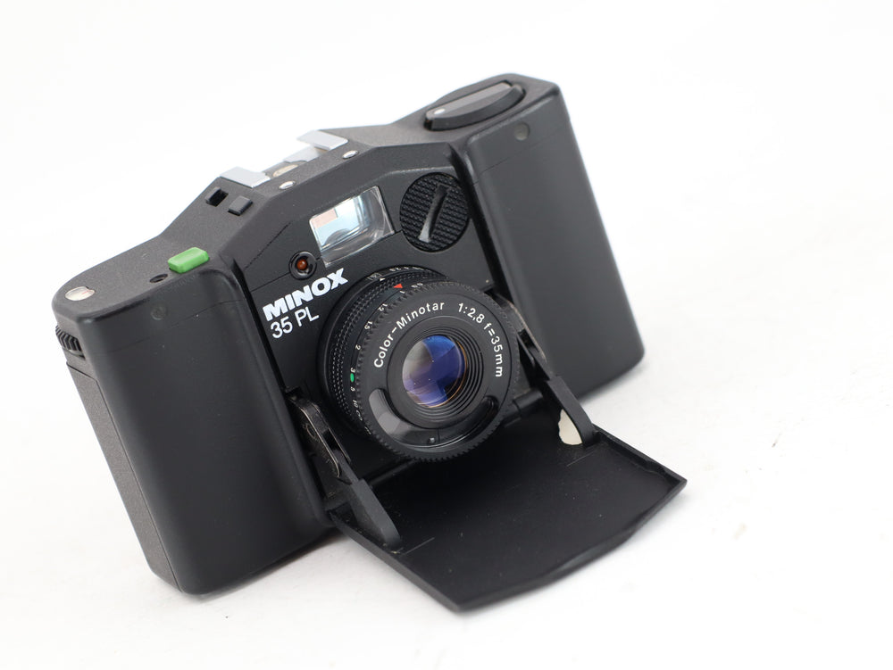 The Minox 35PL is a premium compact 35mm film camera known for its remarkable engineering and superior lens quality. As part of the Minox 35 series, the 35PL offers a perfect blend of portability and performance, making it an excellent choice for street photographers and travelers alike. Its 35mm f/2.8 lens, known for its sharpness and contrast, delivers outstanding image quality, rivaling much larger cameras. The manual focus and aperture priority mode provide creative control, allowing you to fine-tune your shots with precision.