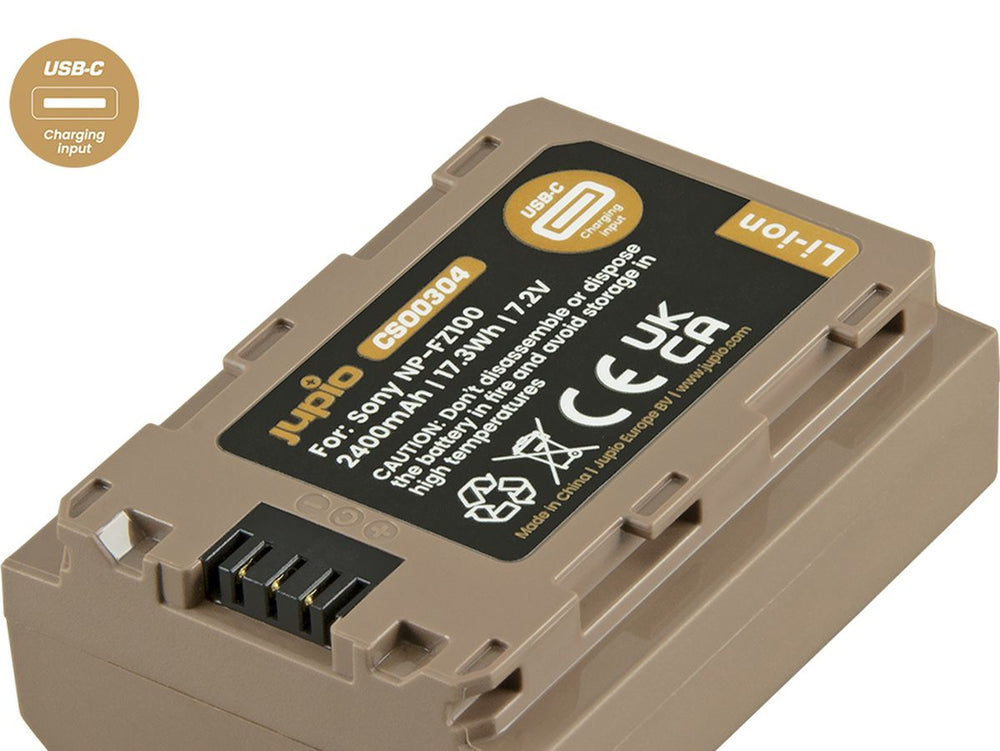 - Jupio Sony NP-FZ100 Ultra C 2400mAh battery with USB-C input