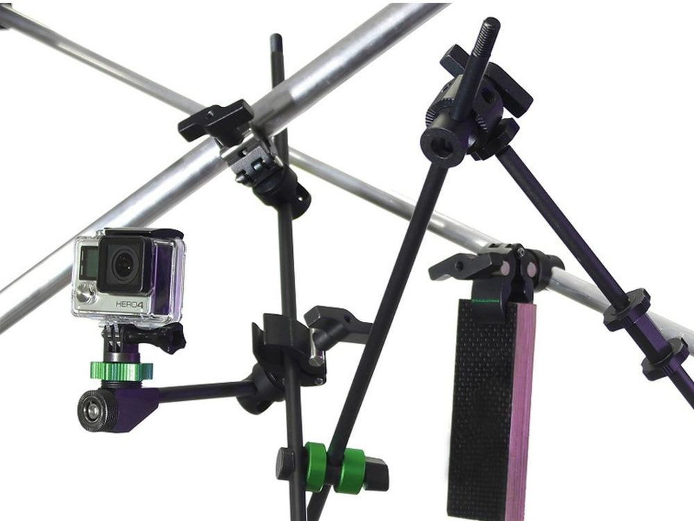 The 9.Solutions Quick Mount Receiver for a 3/8" rod can prove to be very beneficial for installing small cameras in compact areas. This device holds the advantage of having two Quick Mount Receivers designed to sit at a right angle relative to one another.