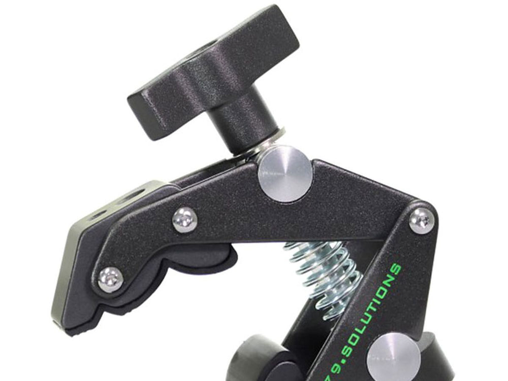 The Clamp Mini incorporates two 1/4" and one 3/8" threaded attachment points on each jaw, enhancing its ability to support multiple devices simultaneously. With its gripping range extending up to 30mm, it can effortlessly capture and hold several different-sized devices. It also boasts an impressive maximum load capacity of 30kg.
